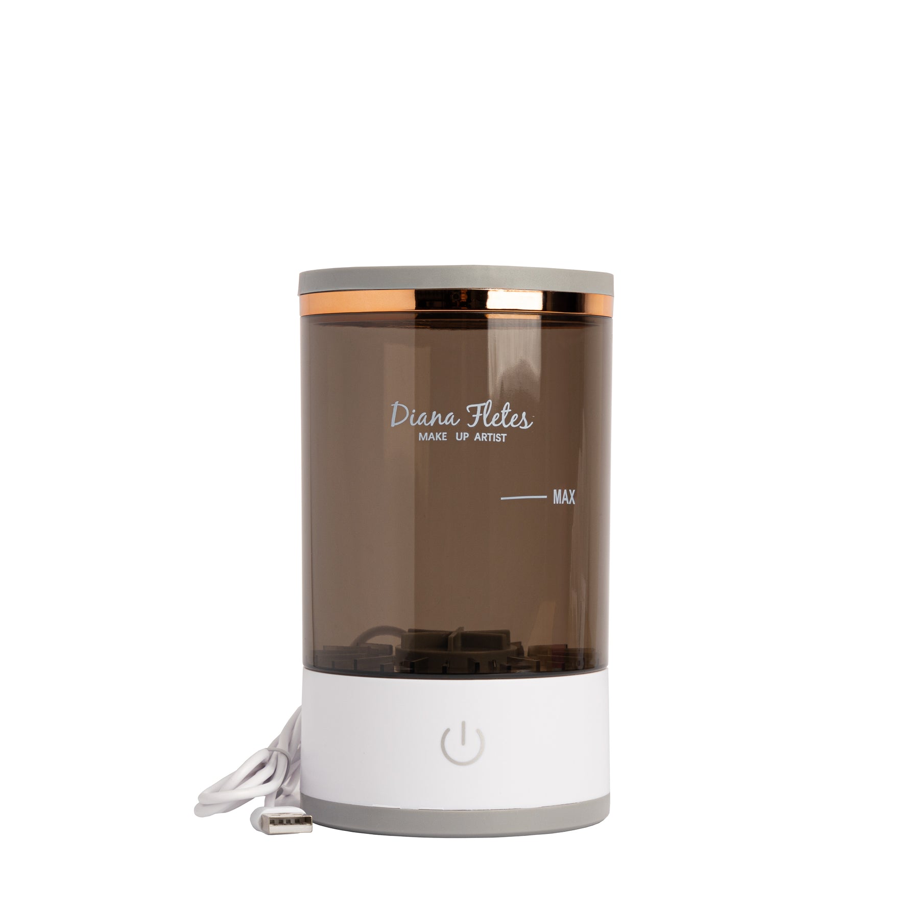 3.Enciende el Lava Brochas Diana Fletes y deja que gire durante unos segundos o minutos, según el nivel de suciedad.